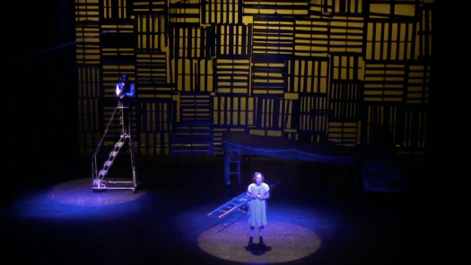 The idea of theater as a home fit in perfectly with the show. In fact, Peter and the Starcatcher often plays on the concept of theater, asking the audience to acknowledge the literal workings of the stage and believe in the powerful magic of words emoted by its actors. The play asks us to suspend our disbelief of the ordinary and to use our imagination to create the extraordinary. Thus in designing this play, I wanted to include the familiar props, costumes, and backstage equipment one might find in a theater and use them in imaginative ways to create everything from the docks of London to the various cabins on a ship. So I gathered up all of our ropes, ladders, and crates and we began experimenting as a cast with how to bring this play to life.